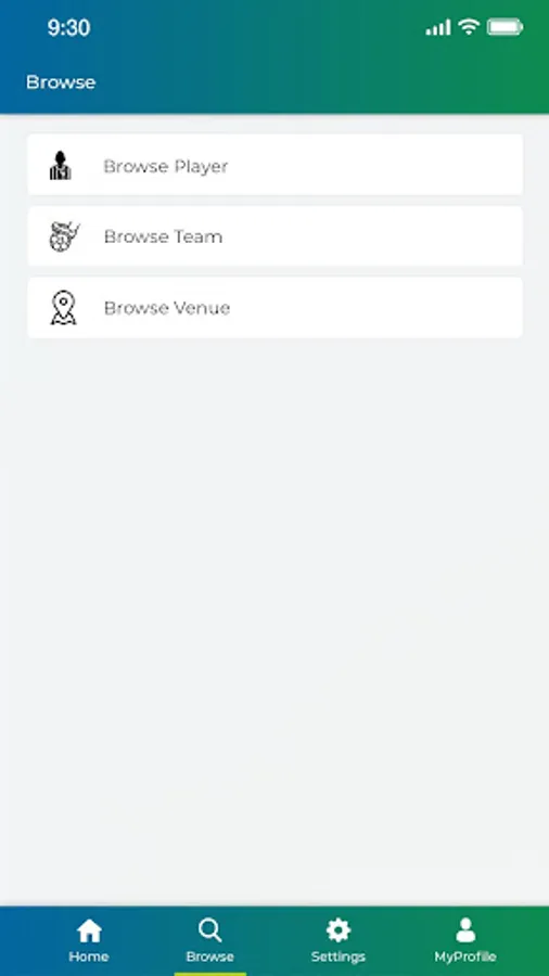 - browse players, teams, clubs and venues
