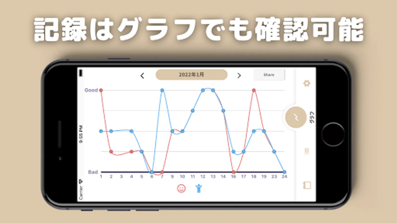 ・ Records can also be confirmed on a graph, confirming the correlation between skin condition and lifestyle.