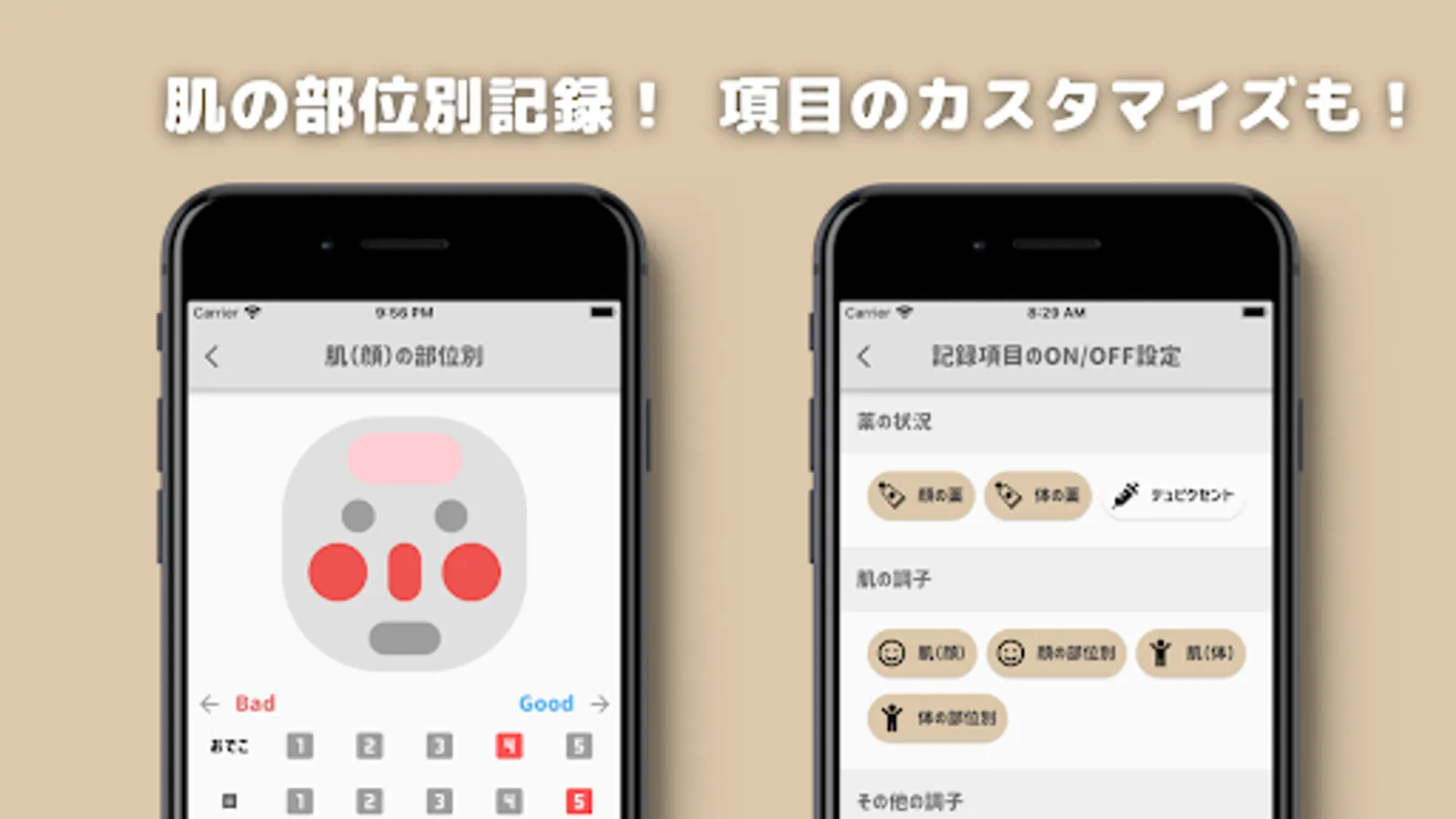 ・ You can enter not only skin condition and drug status, but also lifestyle habits at the same time.
