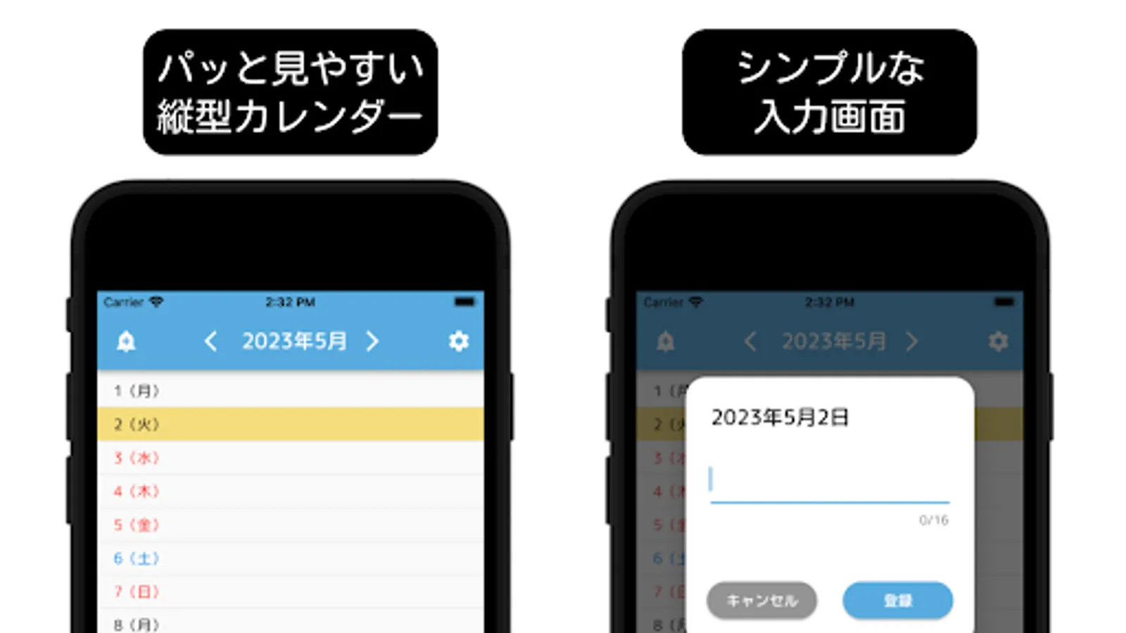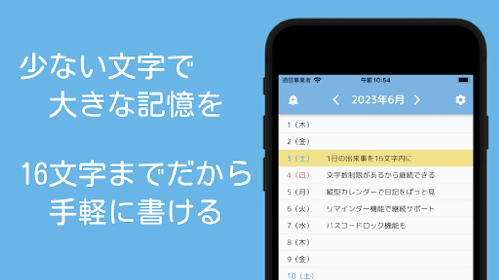 Even if you have a busy day, keep recording your important day with only 16 characters.