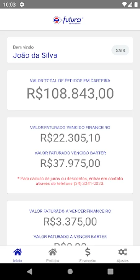 ID Futura was developed with our Customers in mind, its main function is to assist them in managing their finances, invoicing and inventory at Futura Agronegócios. If you are already a Client of Futura Agronegócios, download and enjoy all information in the palm of your hand.