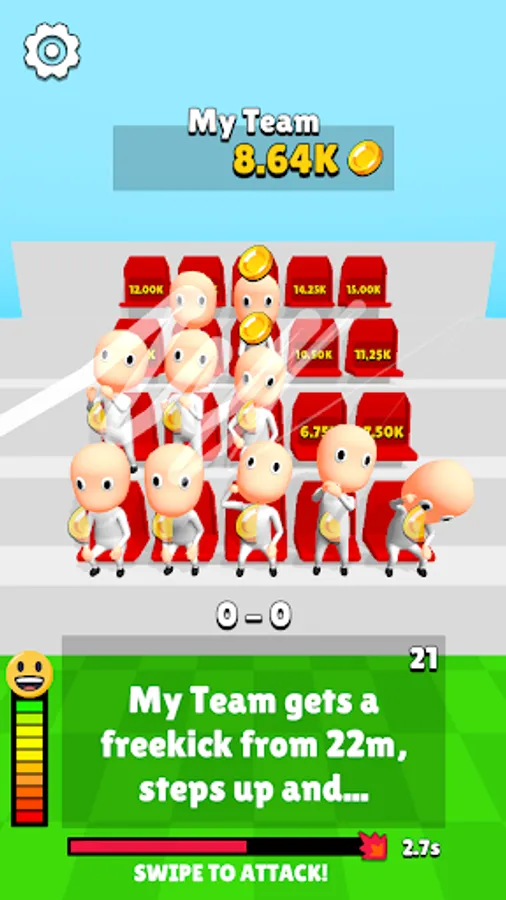 Take your soccer team to the top by cheering on your team with easy to play gameplay. Use swipe motion to boost your team during matches that you play. Earn coins from winning matches. Use coins to unlock more supporters.