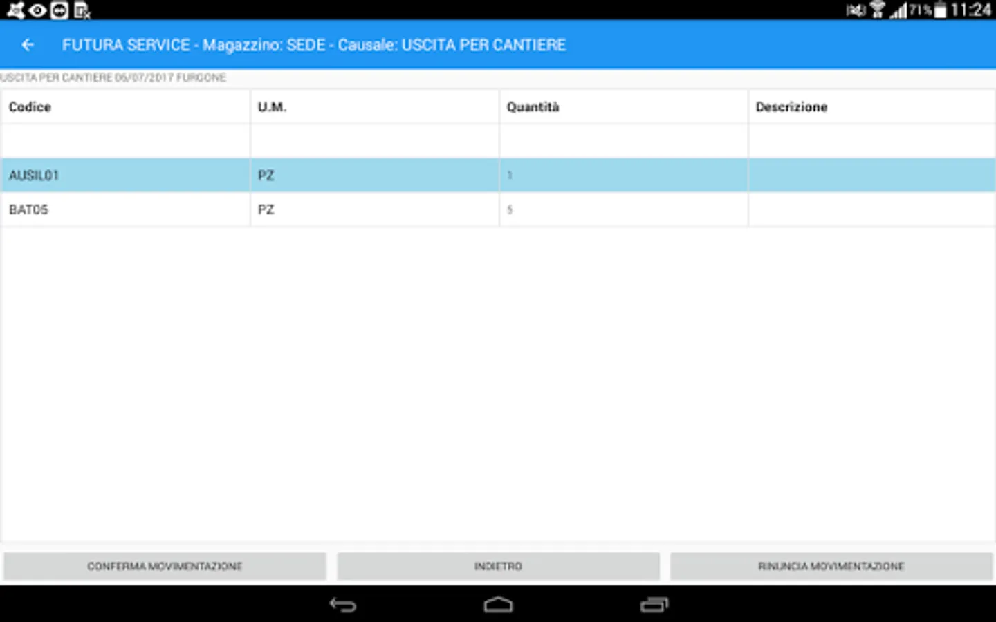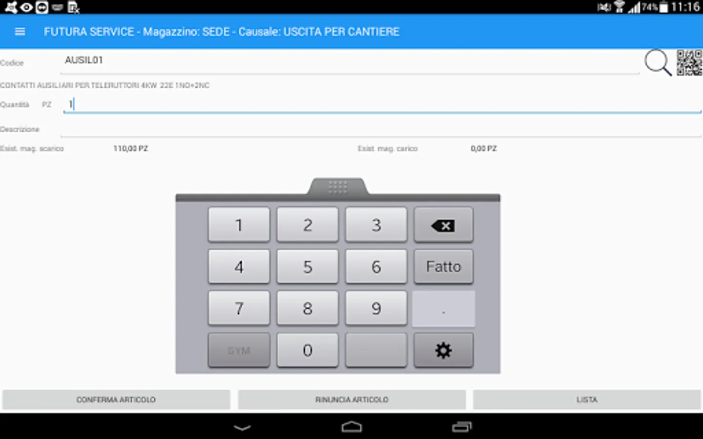 The application allows to handle the real-time storage by connecting directly to the data of Gimi .net procedure. Items can be detected by reading the bar code or wanted for description.