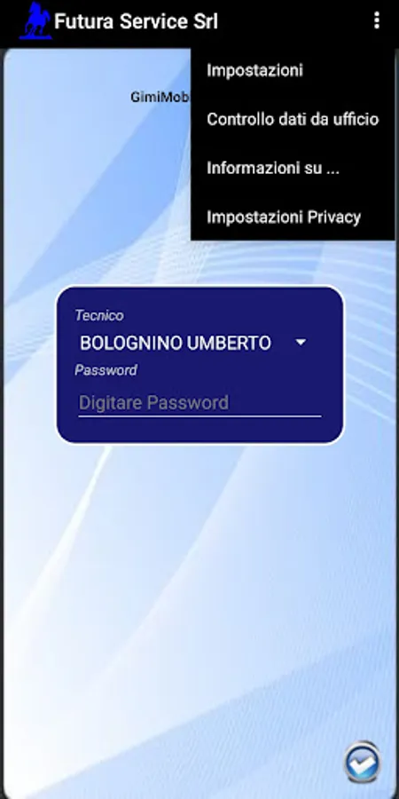 To access the menu of the technical procedure Gimi Mobile authenticates by selecting their name and use the password to access.
