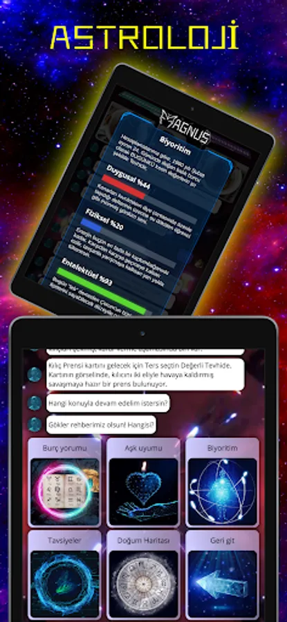 ► Astrology : Daily Astrology interpretation, Love Harmony, Biorhythm and Natal Chart are present in Magnus in a very different way.