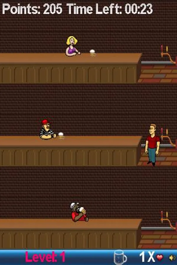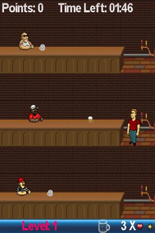 Play the role of a bartender at a bar, serve drinks to demanding customers and push them back before they get too angry.