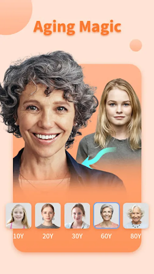 You can choose a photo from your phone's gallery, and the face aging app can use your current photo to predict what you look like in the future in seconds. You can even try pictures of your family or friends to see their future faces. Magic face aging app will help you to look your future self.