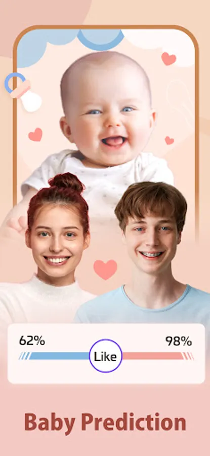Baby Prediction: Become a family with your partner and take care of a baby together. Guess will it be more like you or him(her)? See your future baby here in one click.