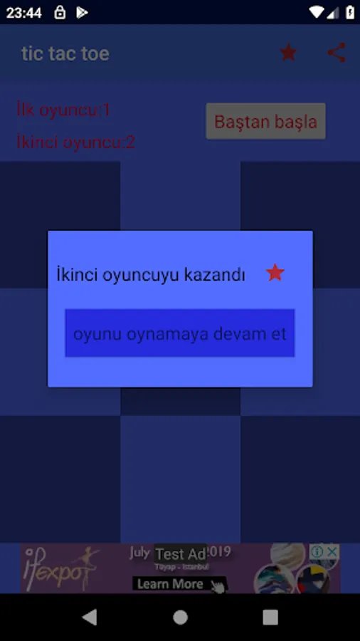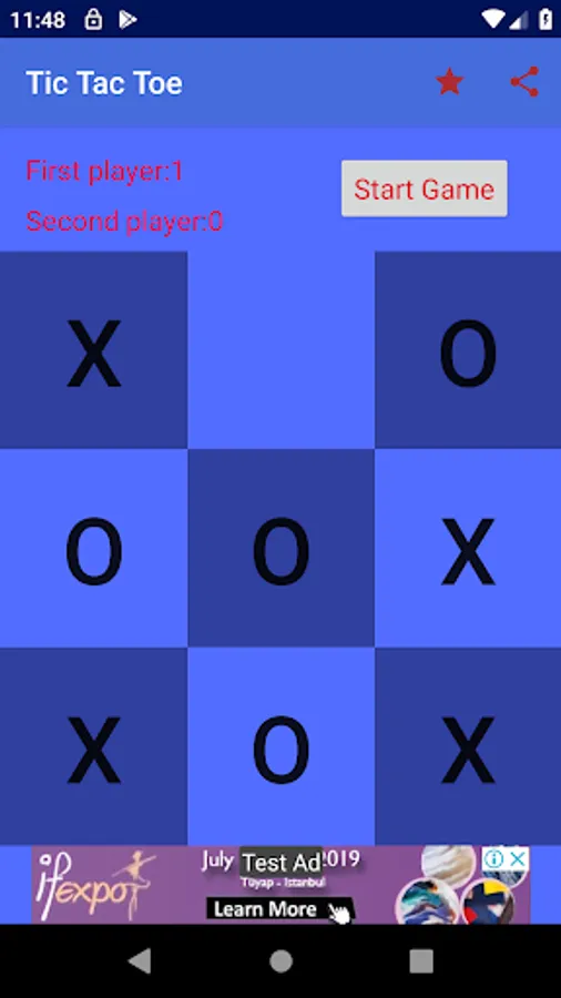 Tic-tac-toe is a paper-and-pencil game for two players, X and O, who take turns marking the spaces in a 3×3 grid. The player who succeeds in placing three of their marks in a horizontal, vertical, or diagonal row wins the game.