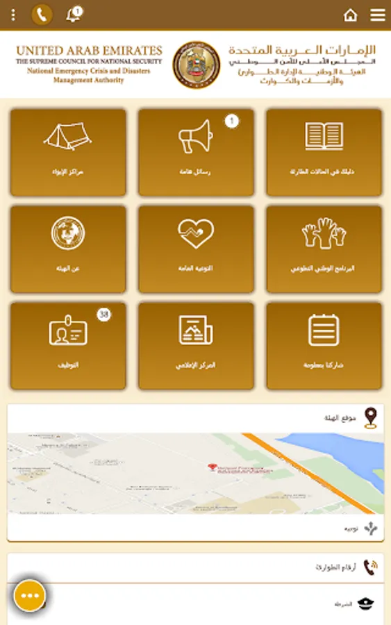 The official App of The National Emergency Crisis and Disaster Management Authority (NCEMA) which helps you access all our smart services. The app provides you with important information during crises and emergency cases. In addition, you can interact with the app by sending information about certain situation. Furthermore, you can become a volunteer to help during the emergency situations by attending different training courses.