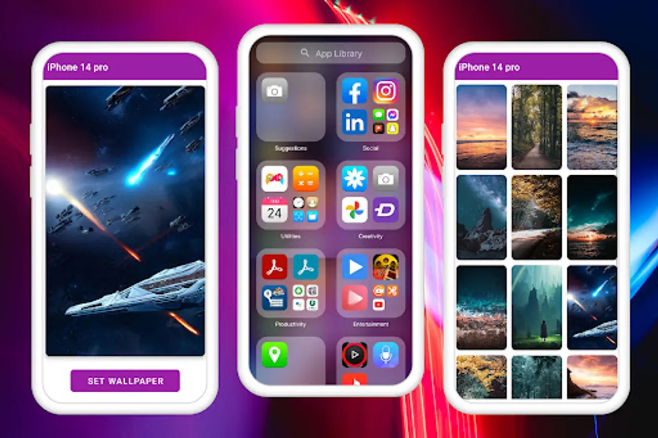 iPhone 14 Pro Launcher give beautiful HD wallpapers and stunning themes with new features and beautiful look which will make your iPhone 14 Pro mobile a new look.