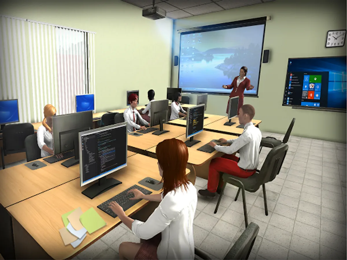 The high school simulator is free to play educational games. You can play quiz games with your friends and ask them trivia questions. Have a fun time with puzzle games. The high school simulator game is packed with activities. As a virtual high school student, you will love to explore an interactive 3D environment. Prove your skills in code-breaking, puzzle-solving, and logical thinking. Enjoy your virtual school life with your schoolmates. Take part in football and soccer, let your virtual sports teacher train you in the best way. This fun learning school life game for kids will not let you get bored. Go into the racing arena and take part in the annual sports gala. In this virtual high school simulator game, each and every level has a different task to complete in the virtual classroom.