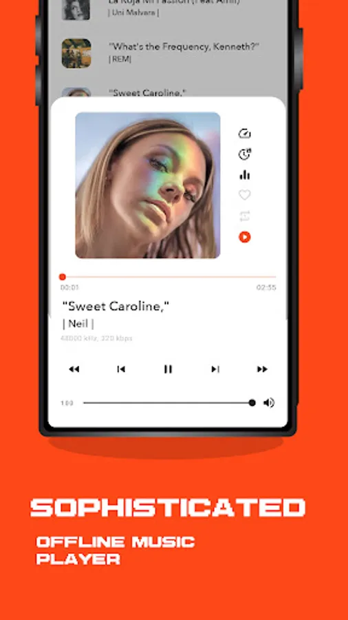 The built-in equalizer with bass boost and reverb effects offers the perfect sound that you deserve. GOO Music Player supports all music and audio formats including MP3, MIDI, WAV, FLAC, AAC, APE, etc. and plays them in high quality.
