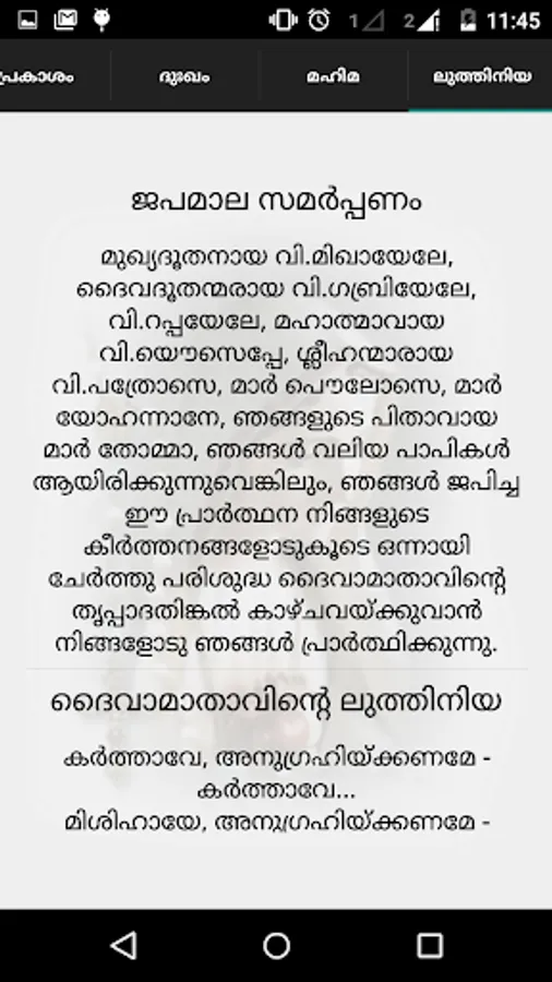 The app is still under development. Please drop us an email(futureapplns@gmail.com) if you would like to add any specific prayers in this app.