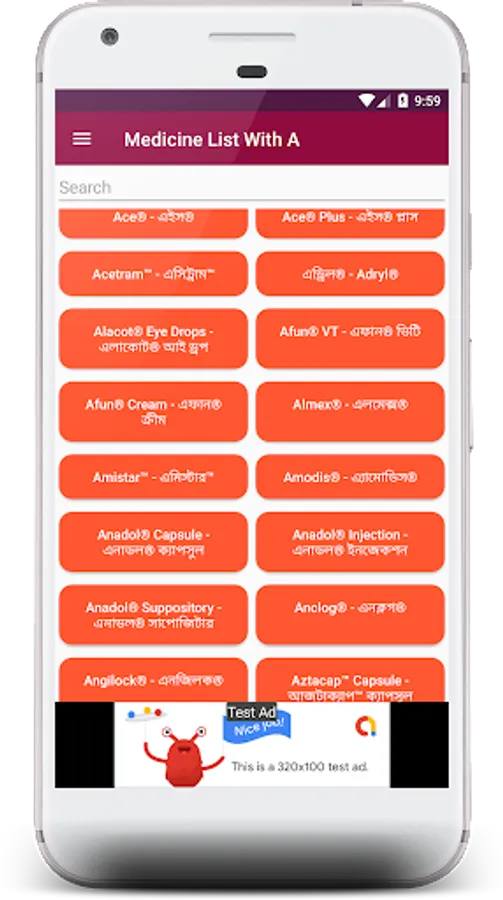 এই অ্যাপে আমরা A to Z হিসেবে ঔষধের সিরিয়াল করেছি। যেখানে ১৫০০ + ঔষধ যোগ করা হয়েছে। সেই হিসেবে আপনরা দ্রুত সার্চ করে আপনাদের ডাক্তারা কি ওষুধ পেস্ক্রাইভ করে তা খুঁজে নিতে পারবেন। ঔষধ সমূহ আলাদা ক্যাটাগরি হিসেবে দেওয়া হয়েছে যাতে আপনাদের খুঁজে পেতে সহজ হয়।