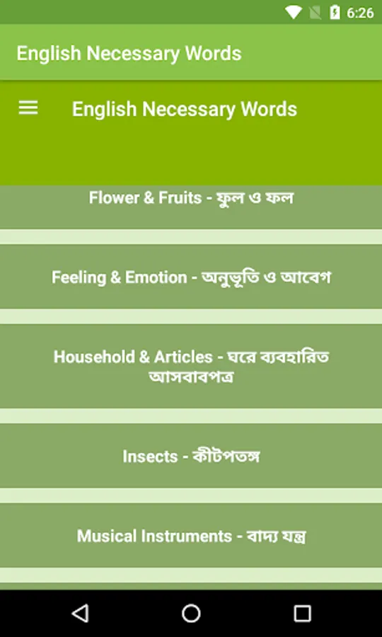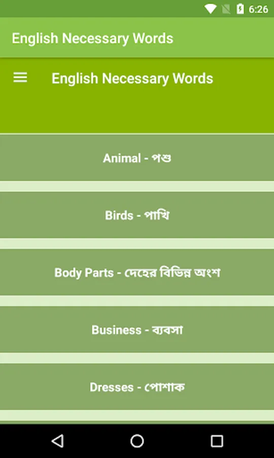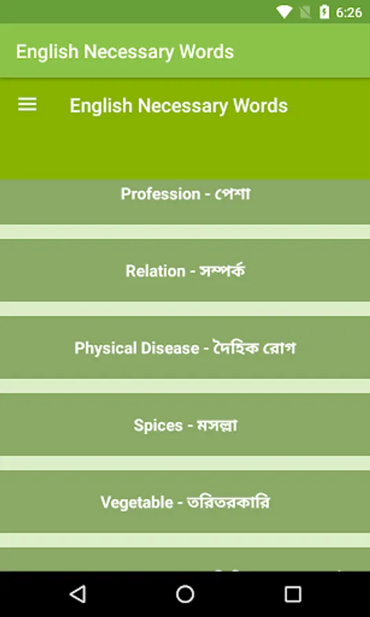 দৈনন্দিন জীবনে দরকারী শব্দ থেকে শুরু করে অফিস আদালতে ব্যবহৃত সব কমন শব্দ/ ইংরেজি ভোকাবুলারি দিয়ে সাজিয়েছি আমার এই অ্যাপসটিকে । যে সব বিষয় নিয়ে এখানে আলোচনা করা হল তা হচ্ছেঃ-
