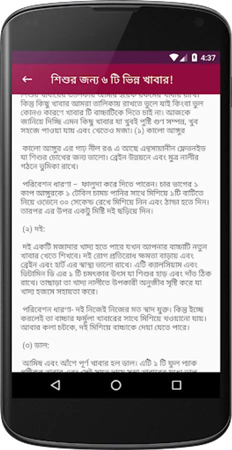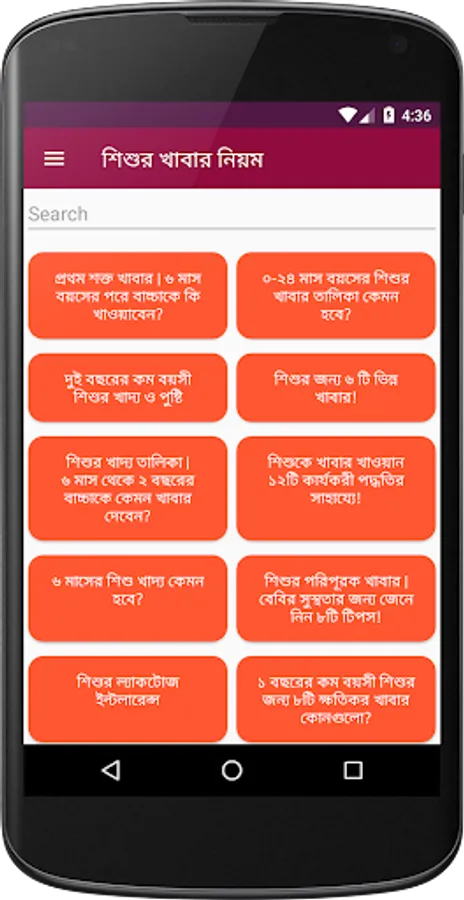 ৬ মাস বয়সের পরে বাচ্চাকে কি খাওয়াবেন?, দুই বছরের কম বয়সী শিশুর খাদ্য ও পুষ্টি, শিশুর খাদ্য তালিকা, শিশুর পরিপূরক খাবার, বাচ্চার খাবারের টিপস, ট্রিক্স এবং রেসিপি সম্পর্কে বিস্তারিত লেখা হয়েছে এই অ্যাপের মাধ্যমে।