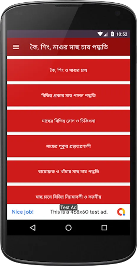 আমরা এই অ্যাপে বাংলাদেশের পুকুরে, খালে, নদিতে মাছ চাষের বিভিন্ন জাতের মাছের চাষ ও কলাকৌশল এবং এদের রোগব্যাধি সম্পর্কে আলোচনা করেছি। সেই সাথে রোগের চিকিৎসা এবং করনীয় সম্পর্কে আলোচনা করেছে। বর্তমানে বাংলাদেশে কই মাছ, চিংড়ি, কার্প, মাগুর, তেলেপিয়া, পাবদা, রুইমাছ, ইলিশ মাছ, পাংগাস প্রভৃতি ধরনের মাছ পালন করা হয়।