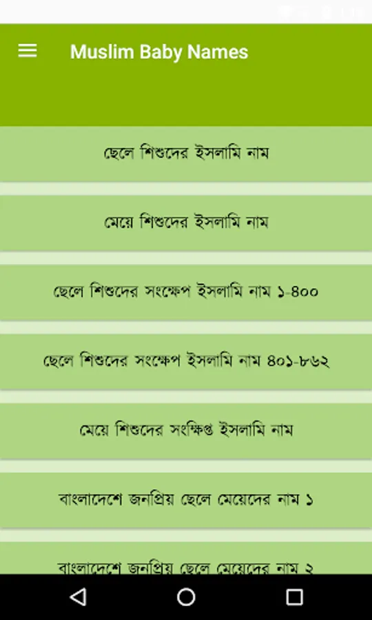 In this application you can get the name of Islamic boys name, Islamic girl name, Muslim Bangla Name, Muslim Boys Bangla Name, Muslim Girl Bangla Name, Islamic Name Meaning, Bangla Arabic Name, Child Bangla Name and meaning etc.