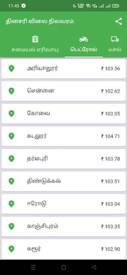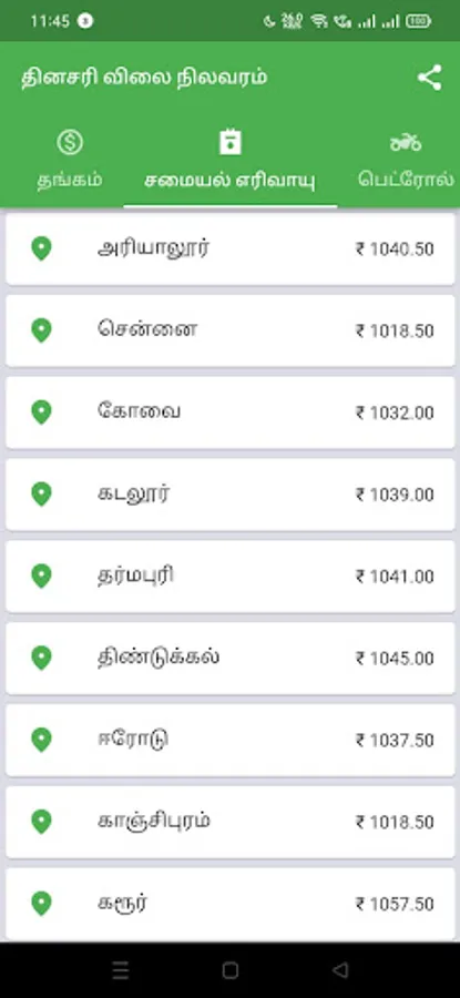 We also provide LPG price of all over Tamil Nadu.