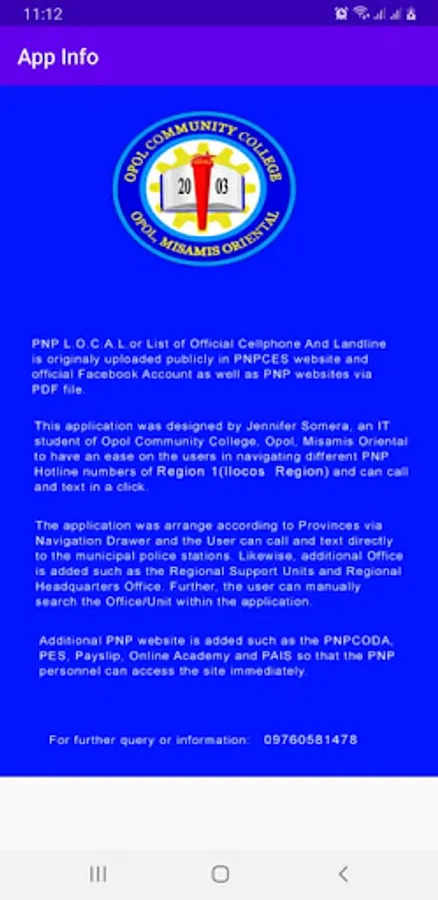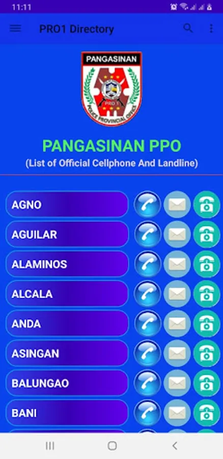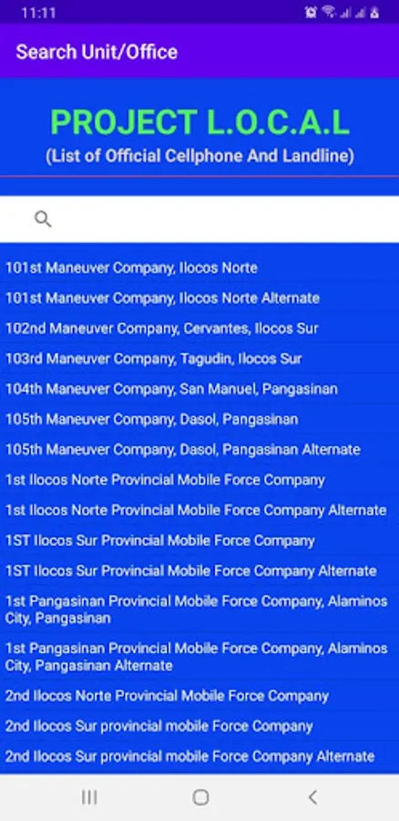 This is the list of official cellphone and landline of all police offices of Police Regional Office 1. This app was develop to make an ease of the user to contact different police station in times of emergency.