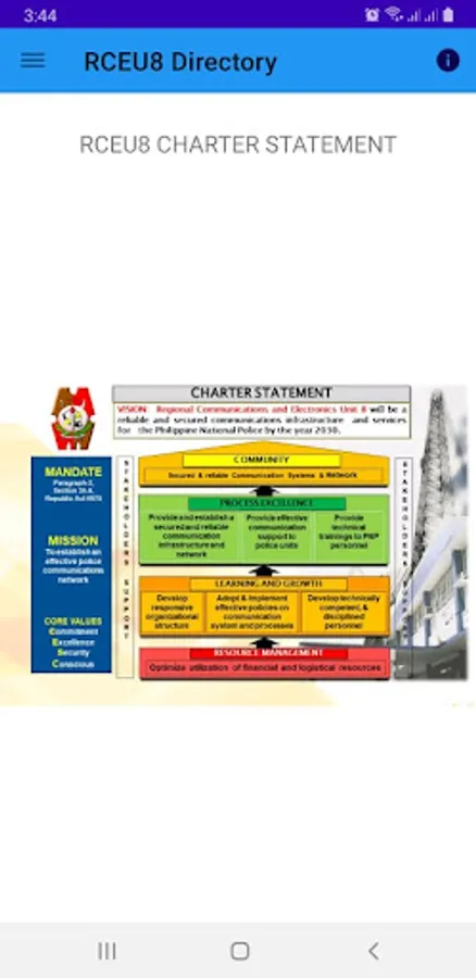 This is an apps wherein it harmonizes all the contact details of RCEU8. It also describe the RCEU8 Charter Statement to include the existing radio repeaters and means of communications. Likewise, a different PNP website and applications are also incorporated to have an ease access such as PNPCODA, Police Open Academy, PNP email, etc.