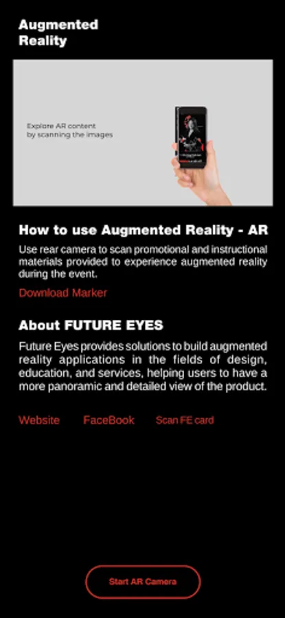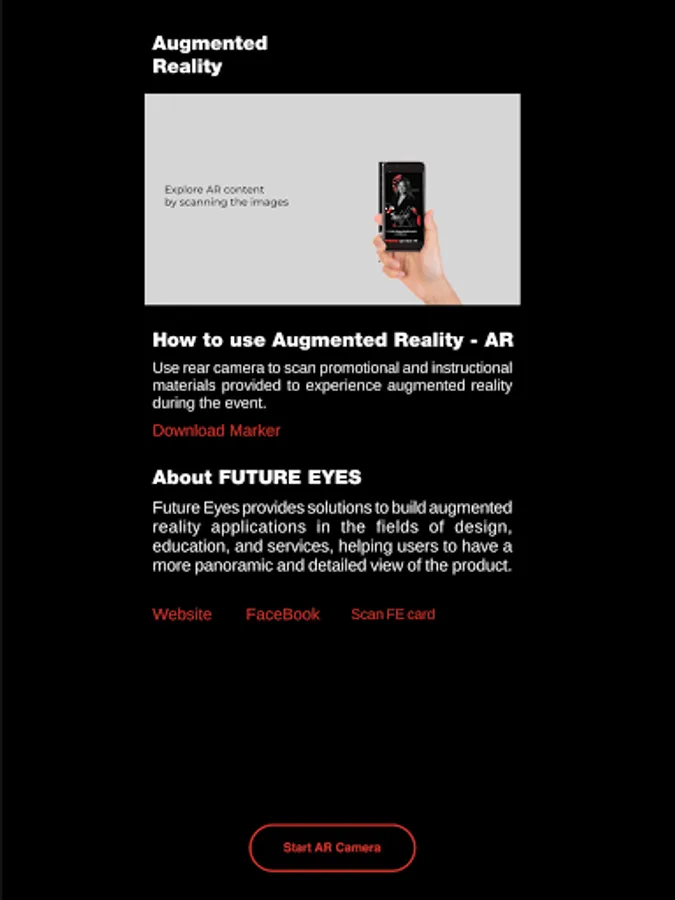 Explore digital content embedded in physical materials with your mobile devices. Future Eyes AR is designed to enhance the augmented reality experience during the event. The application allows users to view the extended digital content with printed posters, key visuals, and other materials provided.