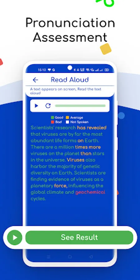 Start your PTE academic practice test preparation by testing and improving your speaking skills. Choose between Read Aloud, Repeat Sentence, Describe Image, Retell Lecture, and Short Answer, and get the feeling of a real PTE test. Our app uses your microphone to analyze your speech and pronunciation and also features an HQ voice-over so you can listen to the text being pronounced by a native speaker.