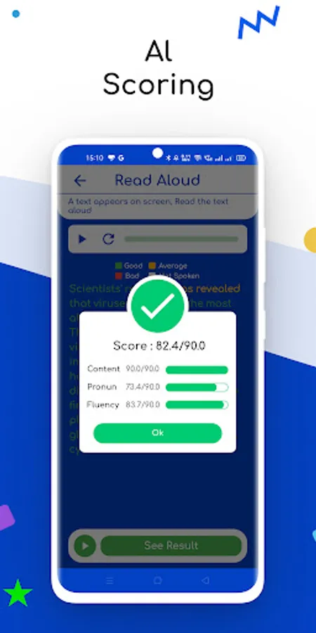 Get real AI scoring prediction for each PTE test section. Know your advantages and flaws so you can smartly prepare for your PTE test. Just select the sections with βAIβ icon and try our realistic AI scoring.