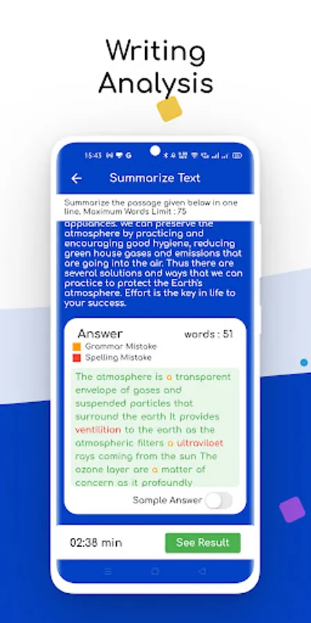 Our online practice PTE exam 2021 app also allows you to practice your writing. Choose between Essay & Summarized Text and follow the study guide PTE exam practice to improve your writing skills.