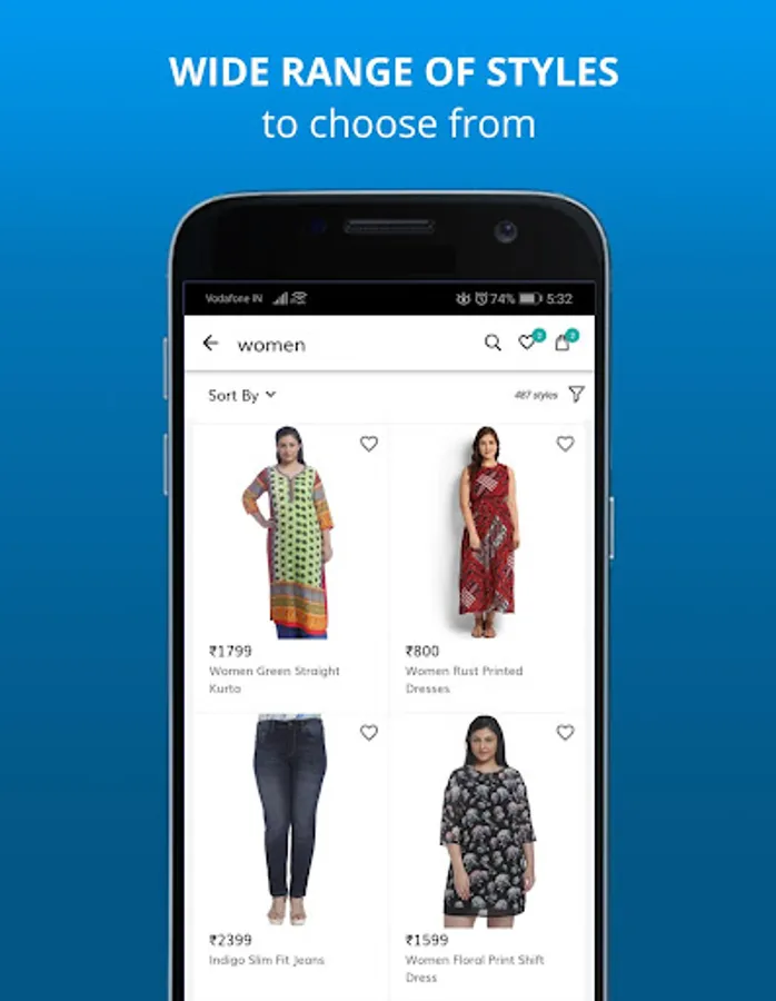 + Refine your search based on popularity/discount/prices/colors/sizes and more using sort and filter features,