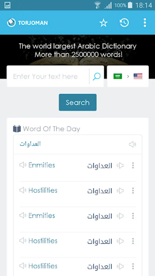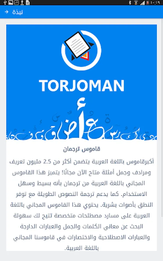 Free Arabic Dictionary by Torjoman is simple and easy to use. It supports long text