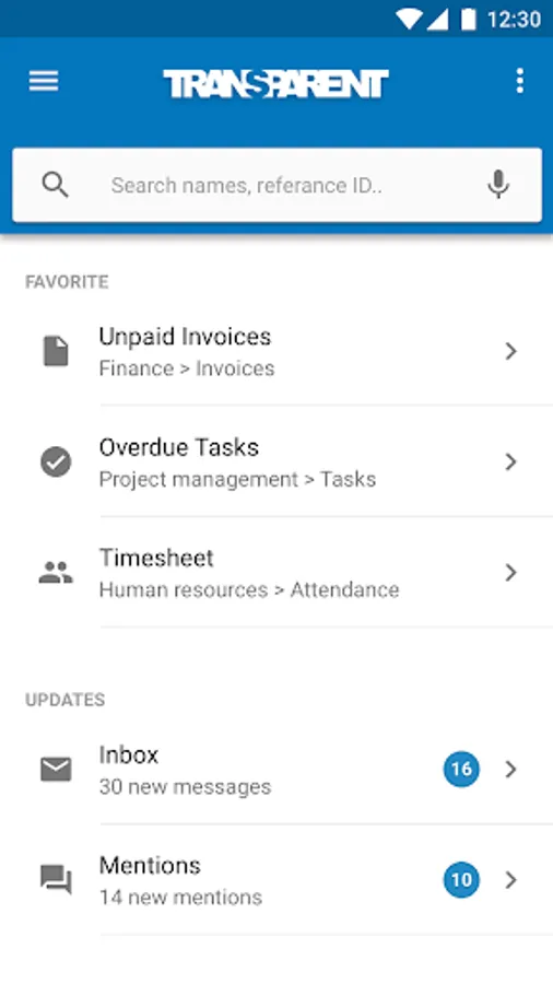 Transparent Mobile can be programmed to comply with all your with existing management systems, financial agreements, and company polices. It allows both managers and resources to view all their project and work-related data in one place, without having to access multiple systems.