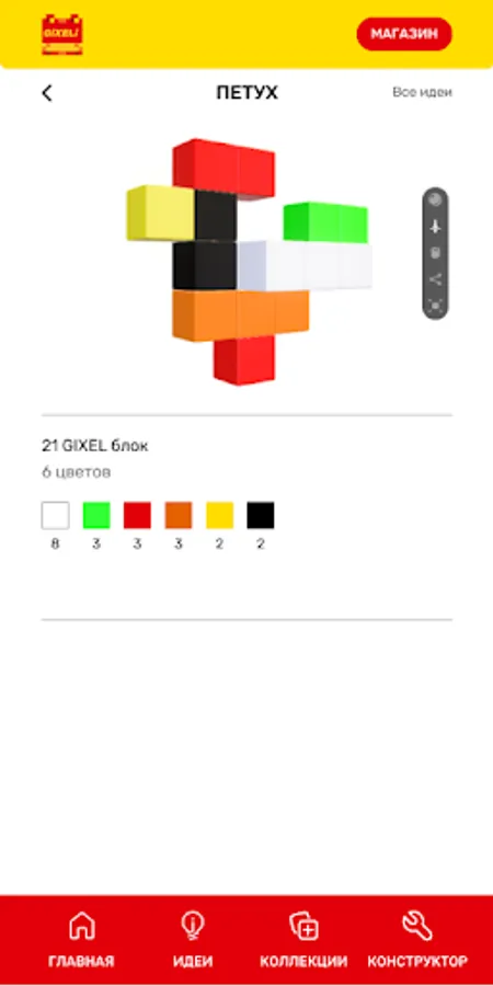 In the application you will find a lot of interesting ideas with the ability to twist the models in space and understand how to assemble them. The models of the figurines are shown in full and in detail, with the number of dice needed to build.