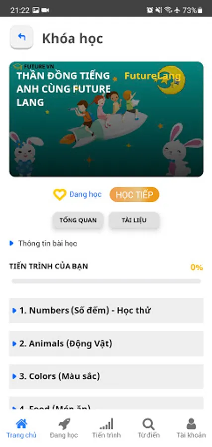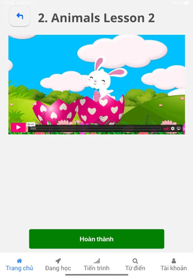 Children's English: for children from 3 - 15 years old, children learn vocabulary and sentence patterns through images, videos, animations, etc., helping them become more interested in learning English. According to the motto LEARNING WHILE PLAYING, PLAYING WHILE LEARNING