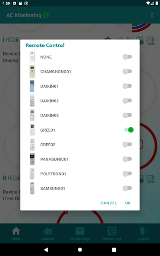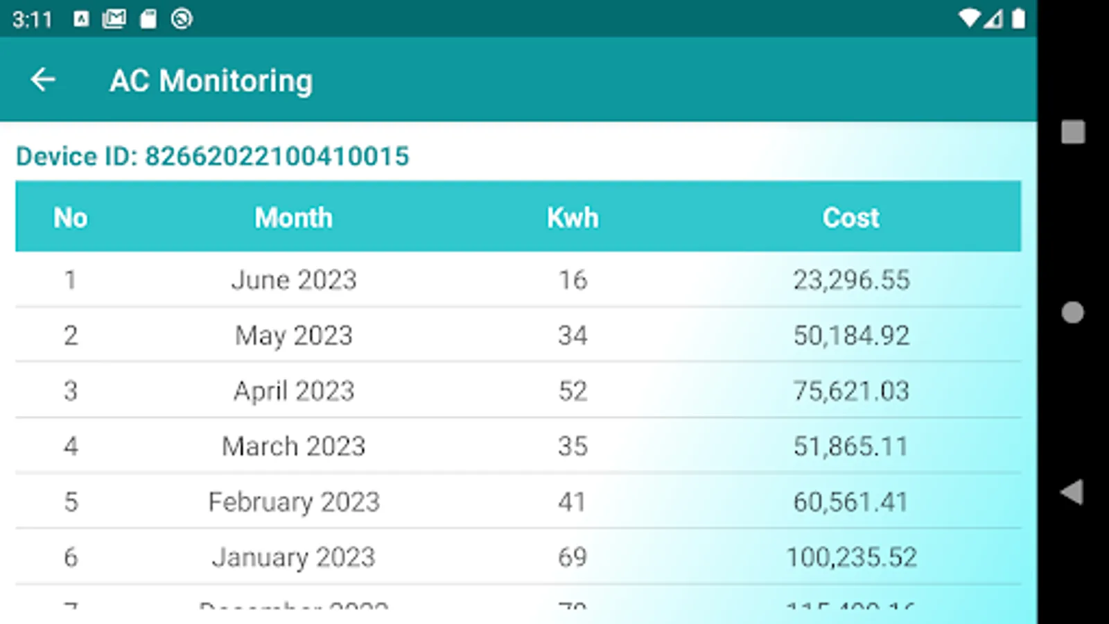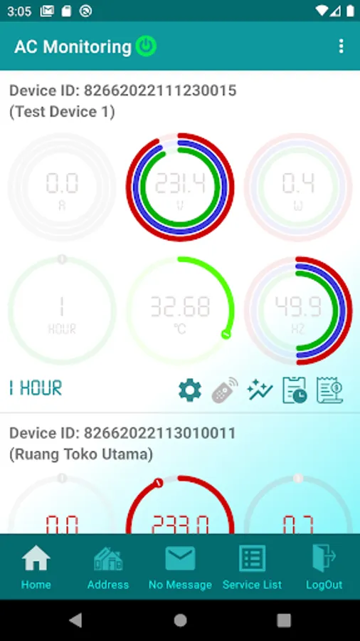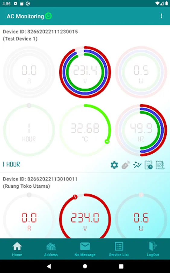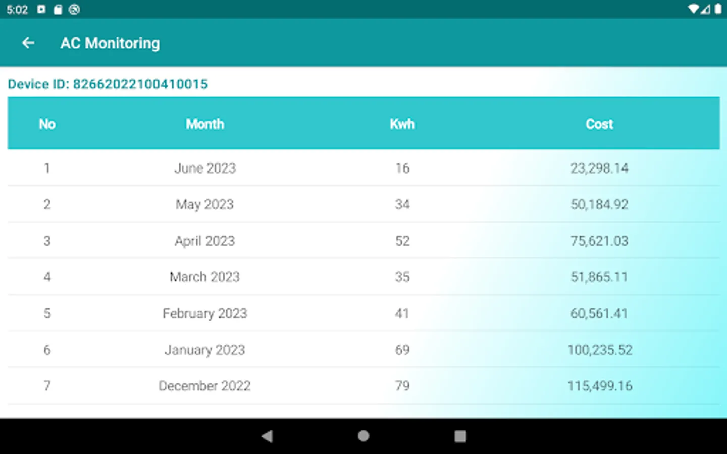 This monitoring application will monitor your air conditioner parameters such as current, voltage of power source, used power, frequency of power source, running hours, and total running hours. You can share this data and communicate with your air conditioner service provider to optimize the maintenance of the air conditioner by another application called AC Service application.