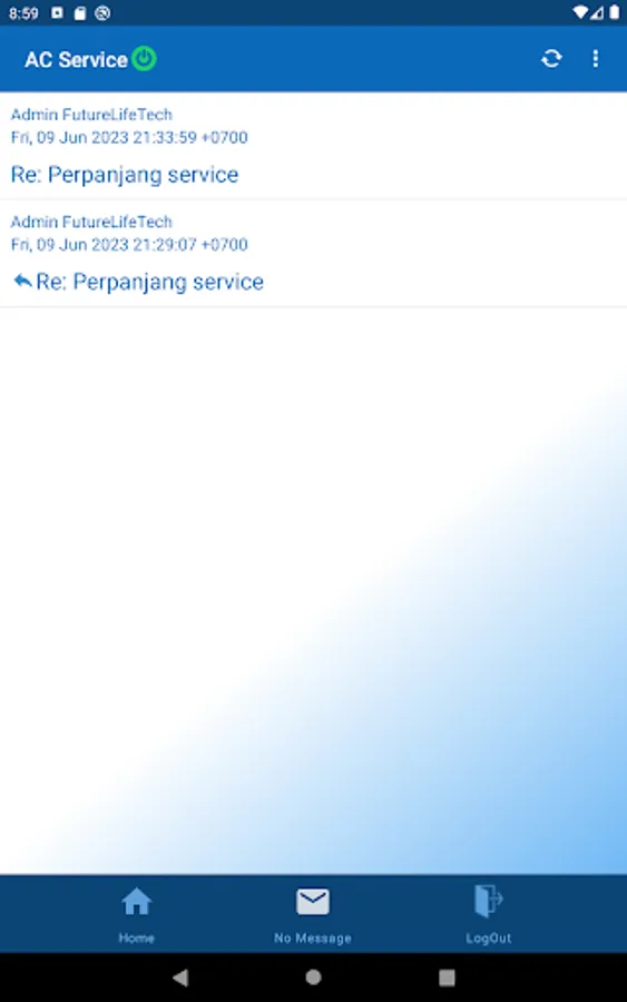 This data service application will connect to the air conditioner owner. With permission from the owner, this application is able to monitor air conditioner parameters such as running hour, total running hours, current, voltage of power source, used power, frequency of power source, and maintenance history.