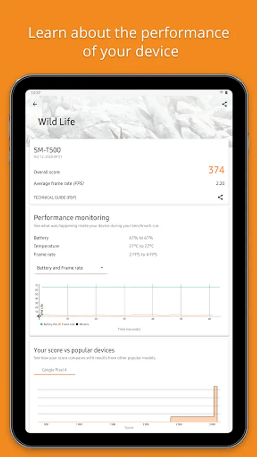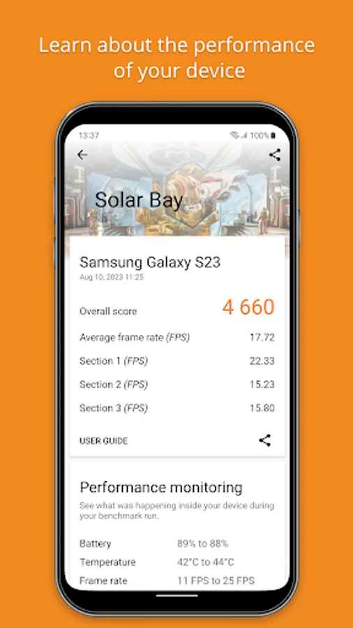 3DMark benchmarks the GPU and CPU performance of your device. At the end of the test, you get a score, which you can use to compare models. But 3DMark also gives you so much more.