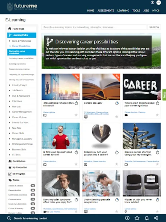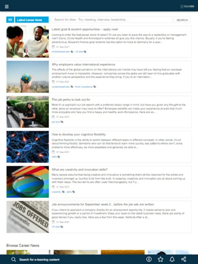 - CAREER E-LEARNING: Short courses tackling everything career-related from self-awareness to succeeding in the role