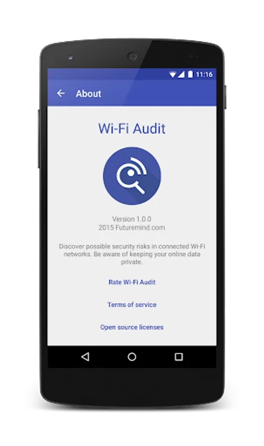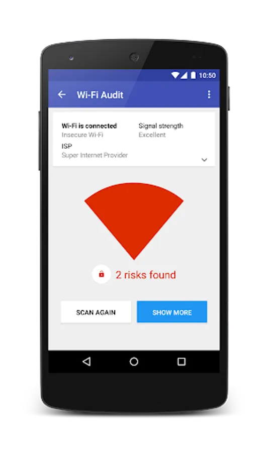 Wi-Fi Audit is a mobile app that automatically checks the security of Wi-Fi networks every time you connect your Android device to it. Additionally our app allows you to check the signal strength or connection status. Wi-Fi Audit comes especially handy while using public hot-spots and unknown networks, which might be vulnerable to various attacks. Thanks to Wi-Fi Audit you can minimise the risk of intercepting your private information, for example when you sign in to your bank or e-mail account.