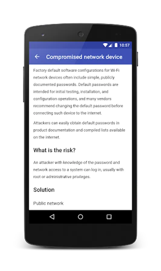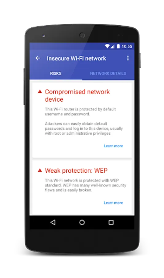 + Identify and audit security risks in Wi-Fi networks: encryption level and Wi-Fi router security.