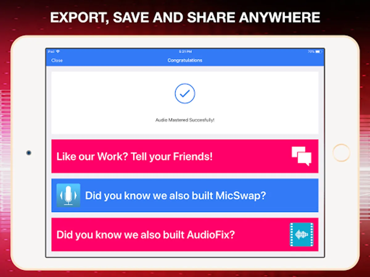 * Export your audio in WAV, M4A, AAC, or FLAC format