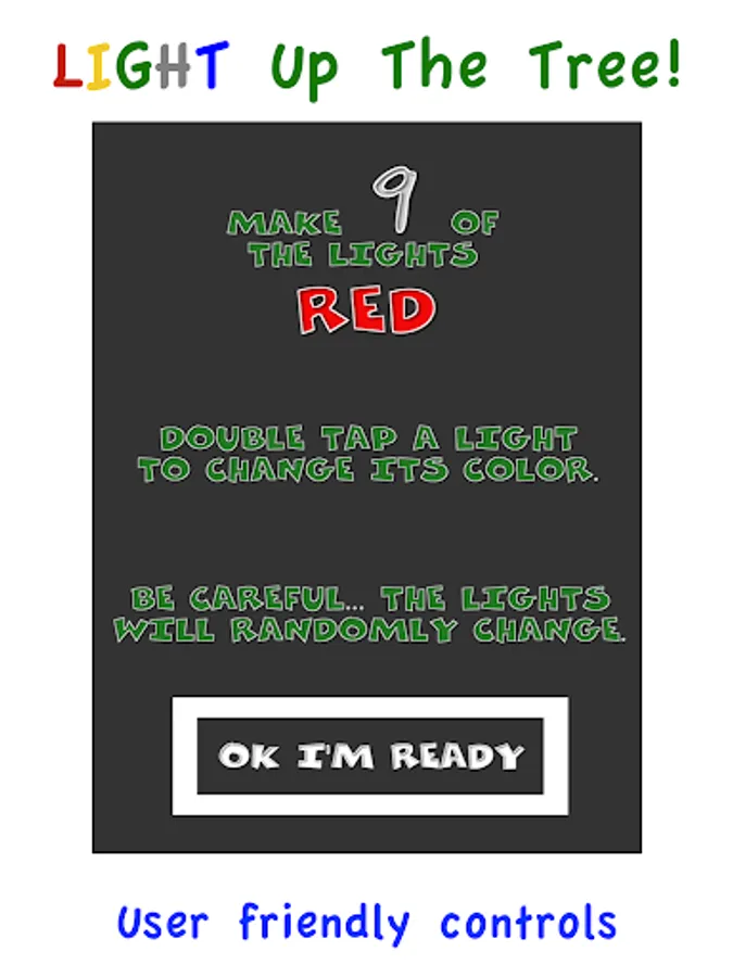 3. Colors and Numbers: This game mode will randomly choose a color and number and you must match that color/number combination by double tapping the lights on the tree. Pay attention because the lights will randomly change color.