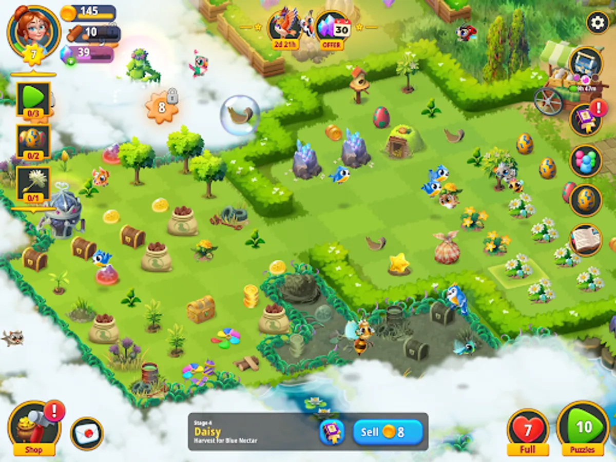 Relax with this unique mix of Merge and Match-3 Puzzles, let your creativity shine by fixing up the old garden, and meet exciting new characters as you progress through the story that will take you through the ages!