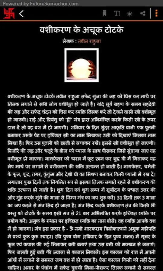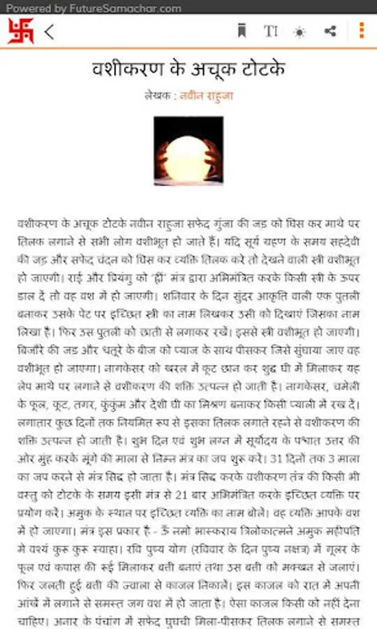 In this Vashikaran app there are several methods of doing the Vashikaran in various articles and the list of such informative articles is comprehensive.