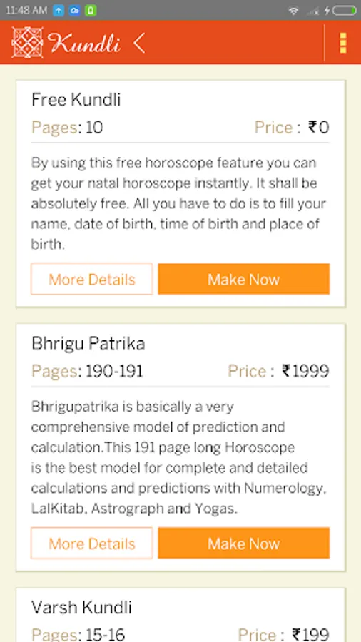 You can also get paid comprehensive models of personalized Kundli of choice. You get personalized reading, annual predictions, remedies like gems, rudraksh, yantra and mantra, Dashaphal, yogas, graphical interpretation on health, wealth etc. and much more.