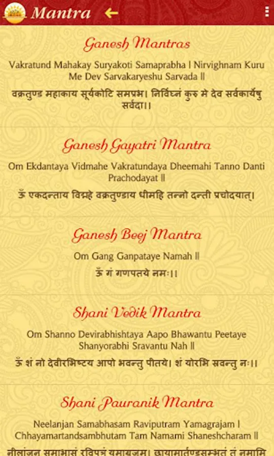 The word "chālīsā" is derived from "chālīs", which means the number forty in Hindi, as the Chalisa has 40 verses. Therefore, Chalisa means "forty verse" prayer. They are recited over and over again or chanted by groups. Each god has different Chalisa. Chalisa is considered best method of propitiating your Ishta devta in modern age. In order to get the blessings this chalisa should be chanted regularly for 40 days. This app is a beautiful collection of various popular mantras aarti and chalisa.