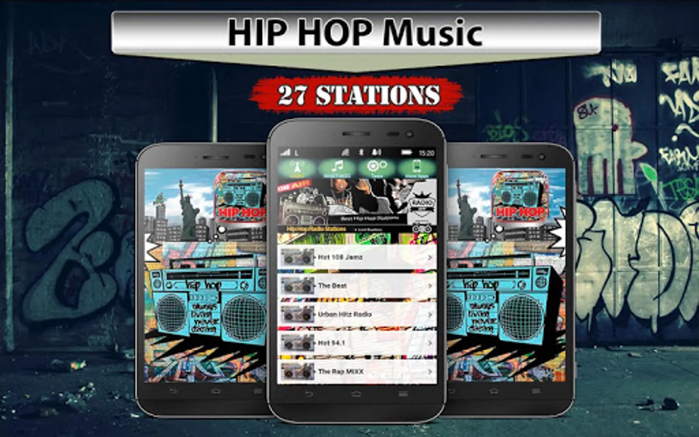 allows listening to radio with or without the headphones. Listen to new Stations HIP HOP, R&B And RAP. This Hip Hop radio station for free app comes with diversity of hip hop stations and since hip hop music is famous for different styles, everybody can find something. Radio app brings hottest, new hits combined with the old ones and all that 24/7 online, on air. Radio music is here for all Hip Hop , Rap and R&B fans who want to enjoy countless hours of music. If you want your favorite music live and stream, decide for this Android radio and browse through many hip hop radio app collected in one place.
