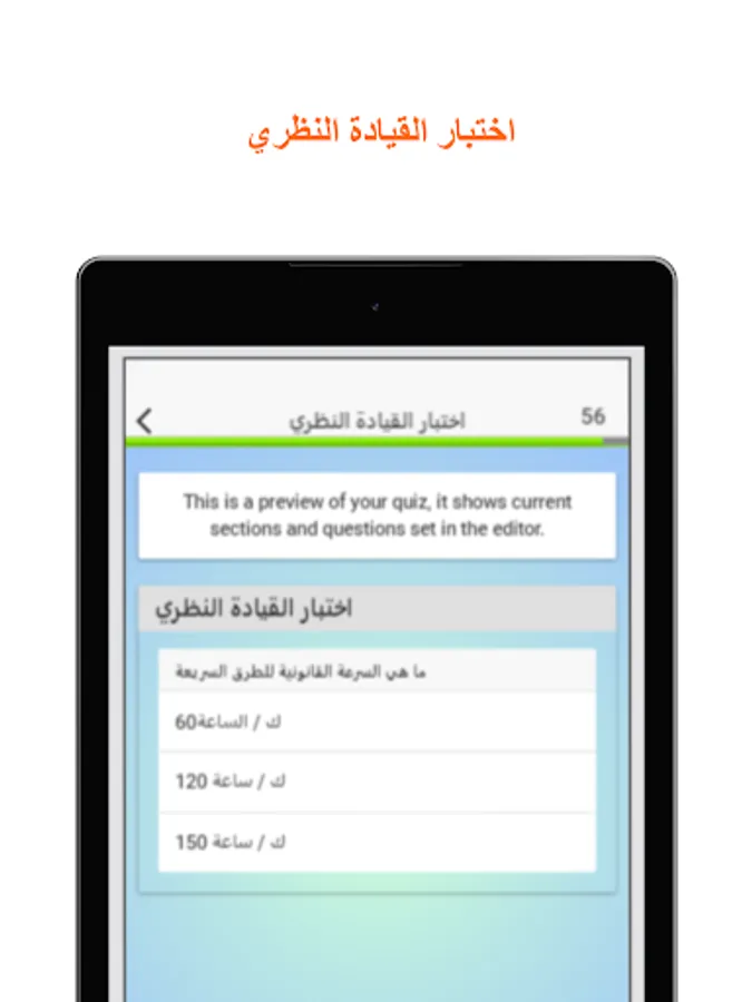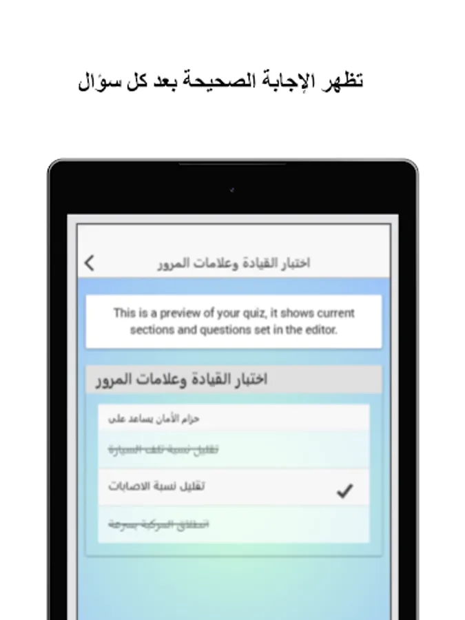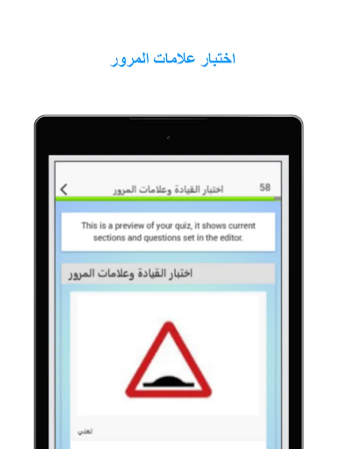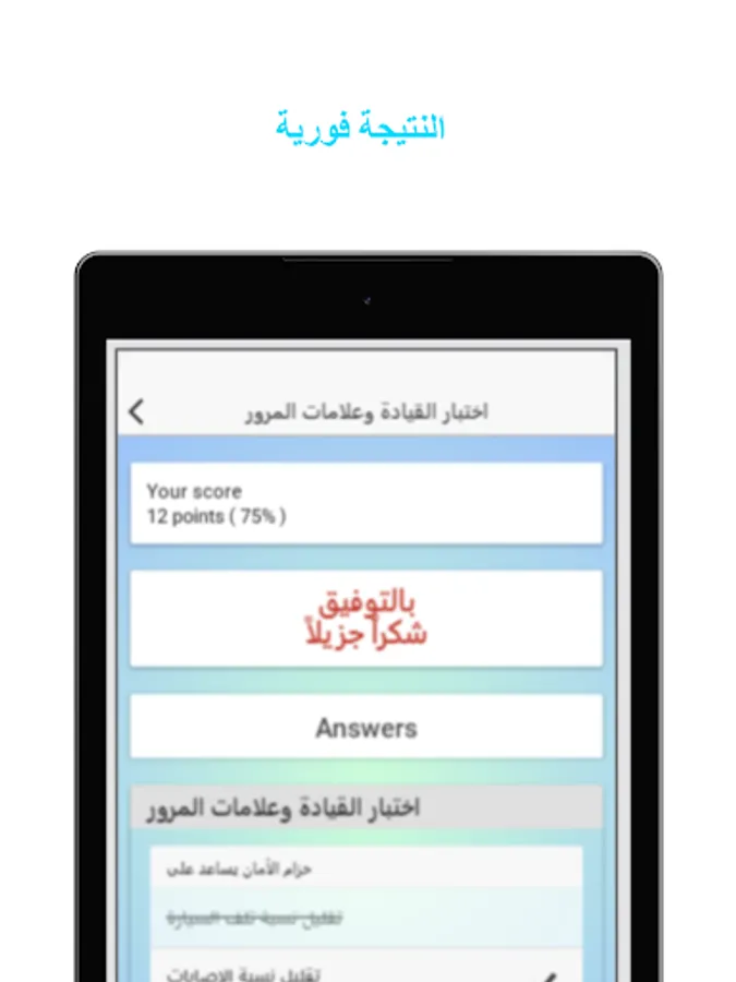 This application helps users prepare for the driver's license exam with confidence and reduces the possibility of them failing the exam. The application contains a wide range of traffic test questions in most Arab countries related to traffic rules, signals, priorities and potential risks while driving.