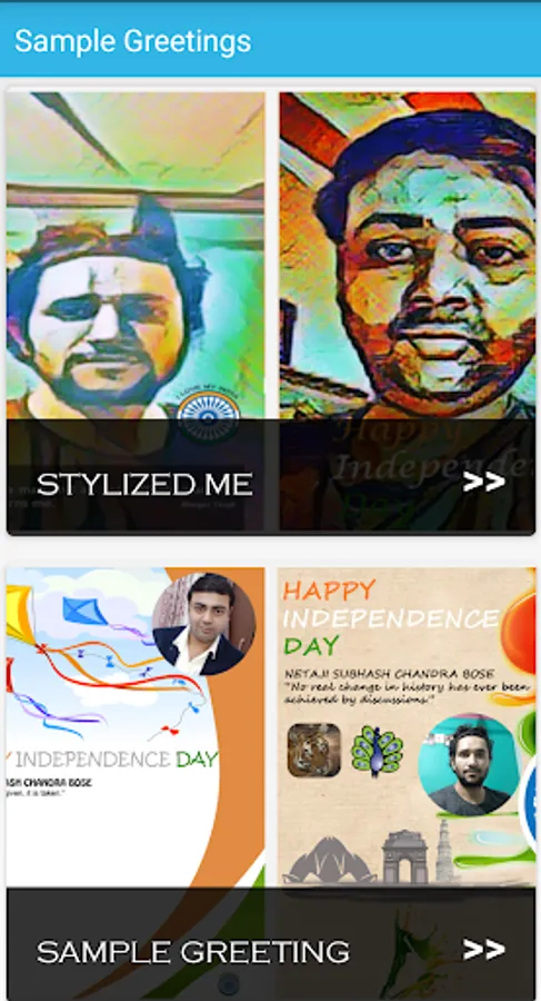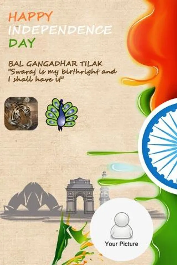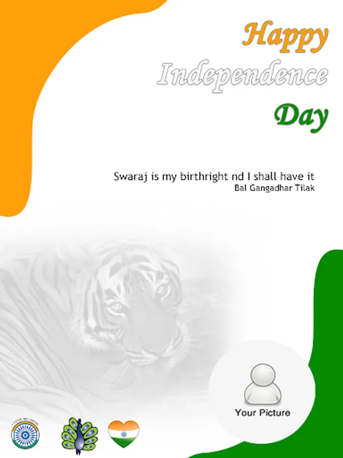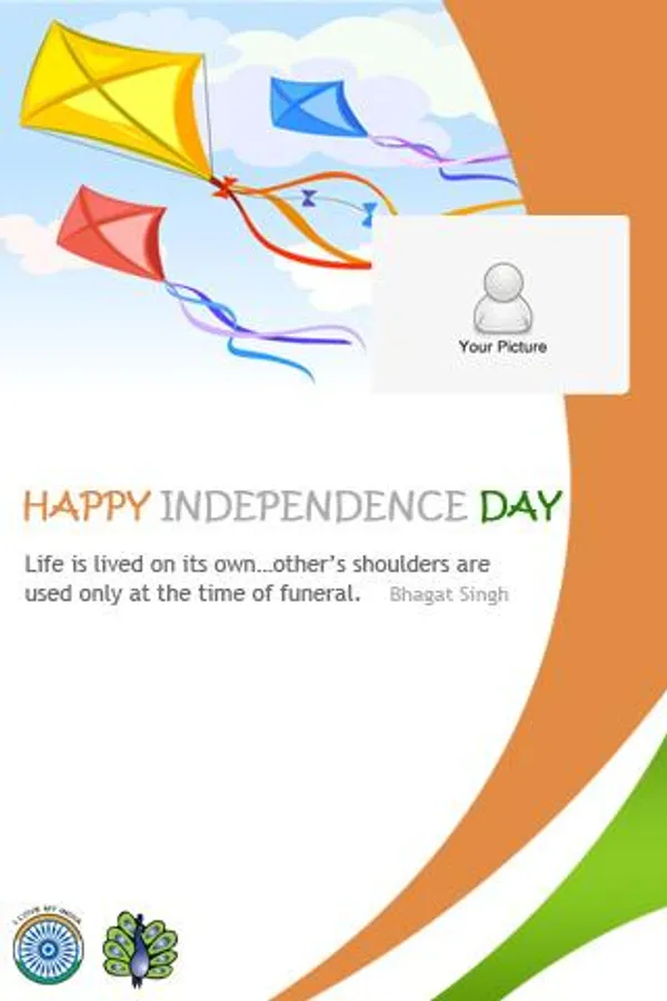 “Banner Greeting” the popular option uses Iconic banners that symbolize independence day – Kites, Tiger, Peacock, Ashok Chakra. Using wizard, you personalize the banners with your Selfie to make it memorable. Decorate your greetings with the range of new stickers and add inspirational quotes from freedom fighters or your own customized message.